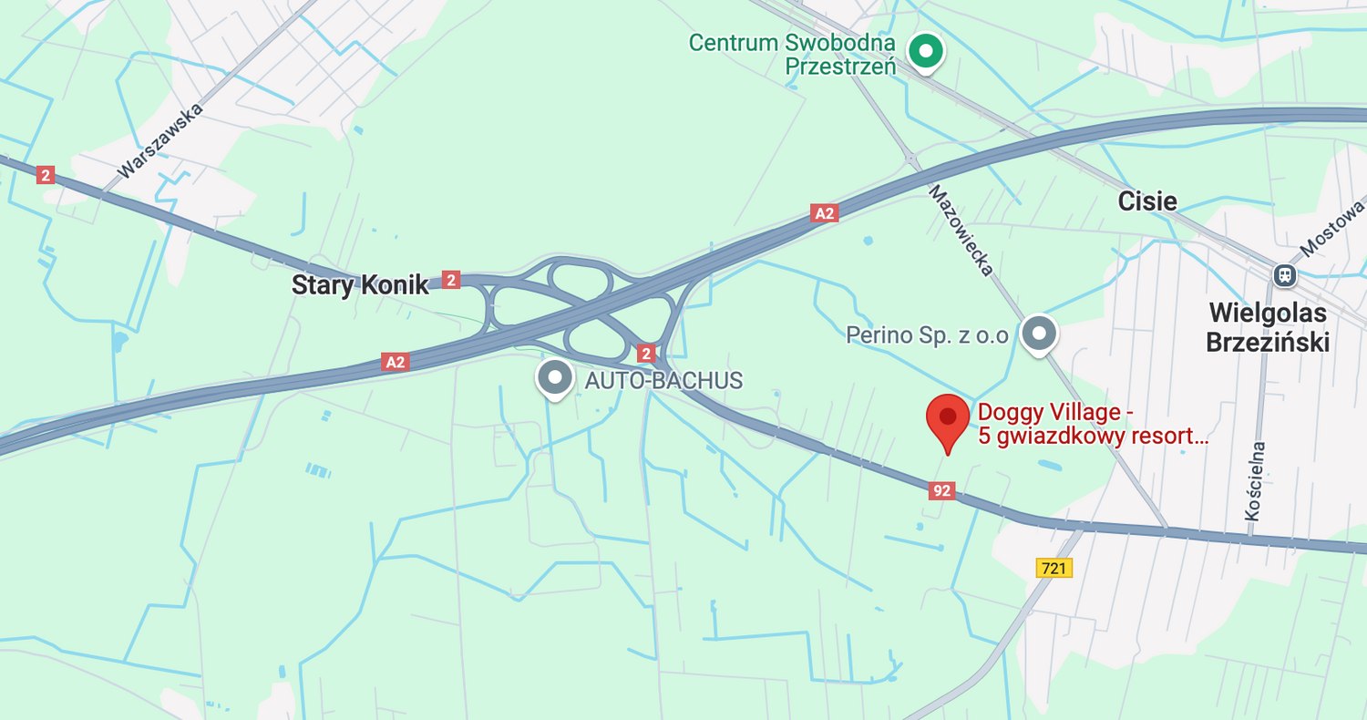 Doggy Village znajduje się zaledwie 22 minuty od lotniska Chopina w Warszawie, dzięki czemu jesteśmy w zasięgu psich opiekunów z całej Polski.