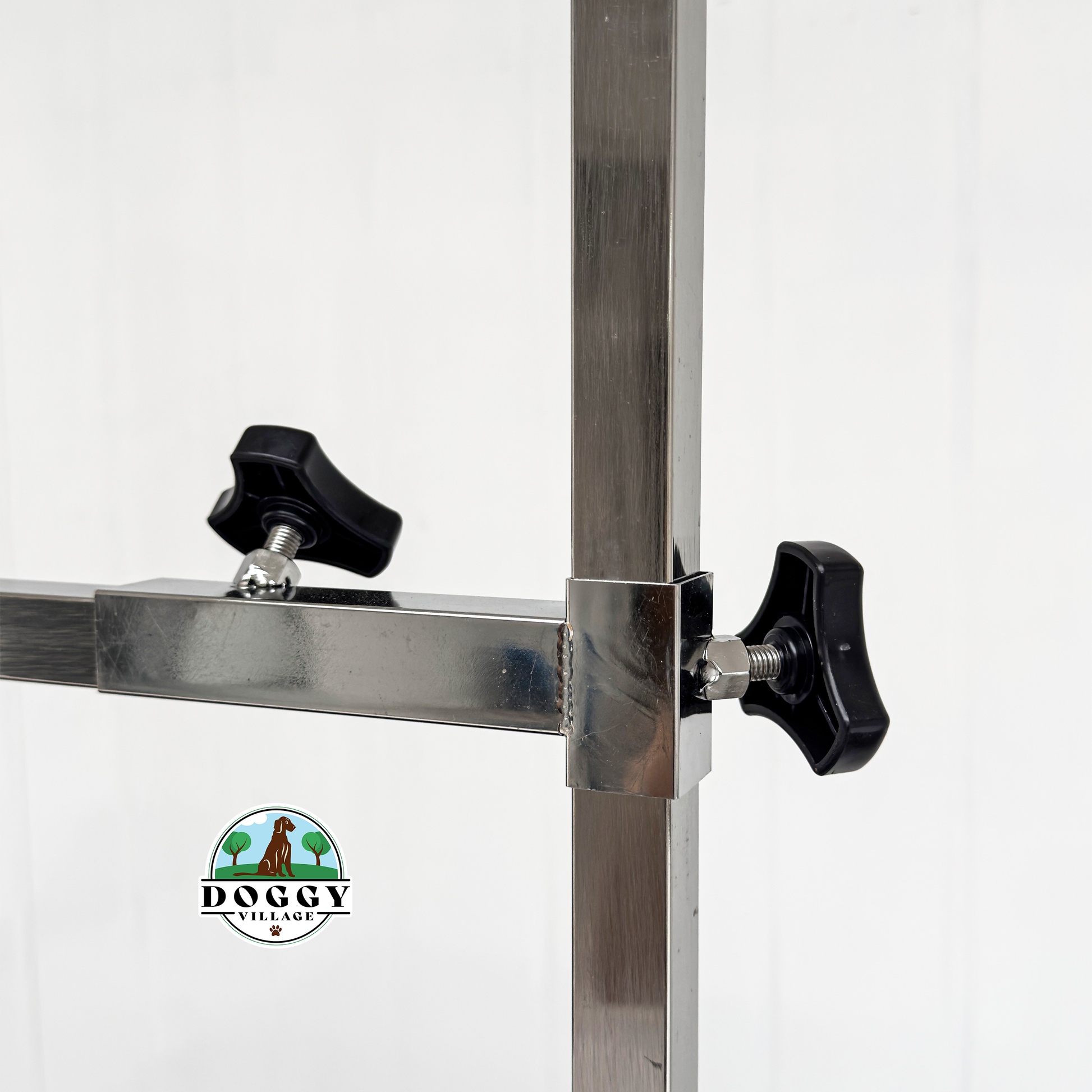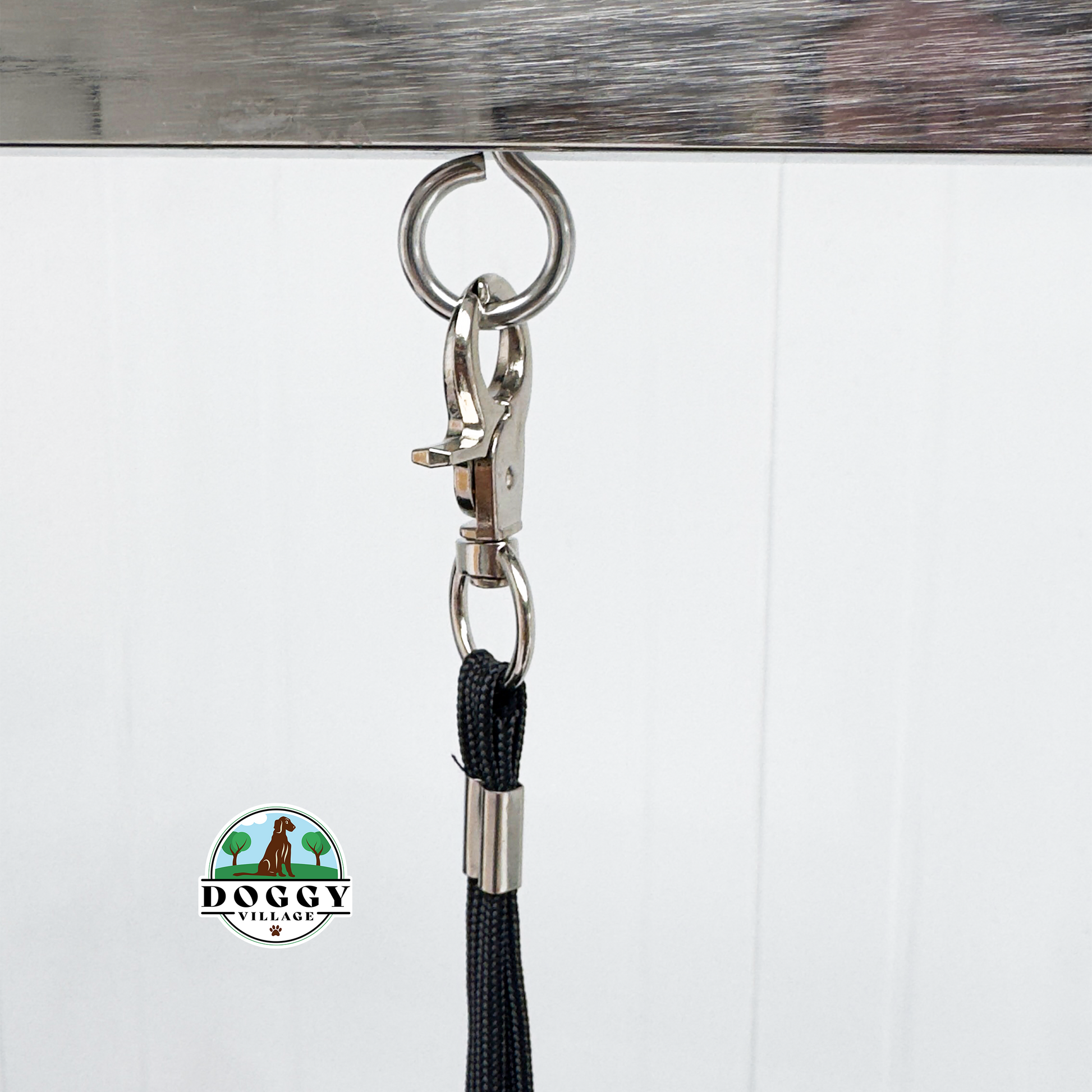 ✅ Pełne wyposażenie – w komplecie otrzymujesz regulowany, dwustronny stelaż ze stali nierdzewnej oraz dwie smycze groomerskie.