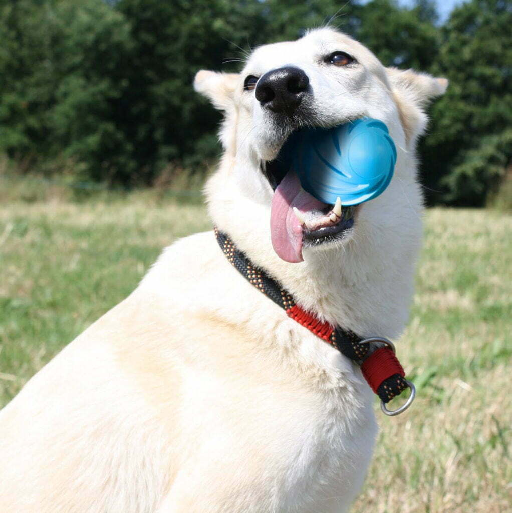 Ruchoma, interaktywna piłka z kolorową iluminacją dla psów średnich, dużych i bardzo dużych.