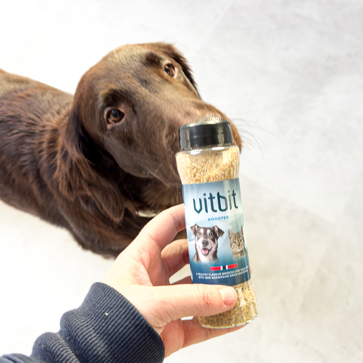 Vitbit Booster to w pełni naturalny, wysokiej jakości produkt w formie proszku, wykonany w 100% z suszonej ryby, bez dodatków i konserwantów. Posyp karmę, jeśli Twój pies lub kot jest wybredny, lub używaj jako naturalnego wzmacniacza smaku!